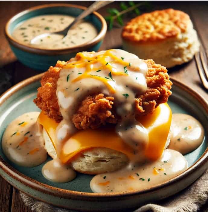 Cathead Chicken Biscuit | Crispy fried chicken, cheddar cheese on a biscuit with gravy. | $12.00 |